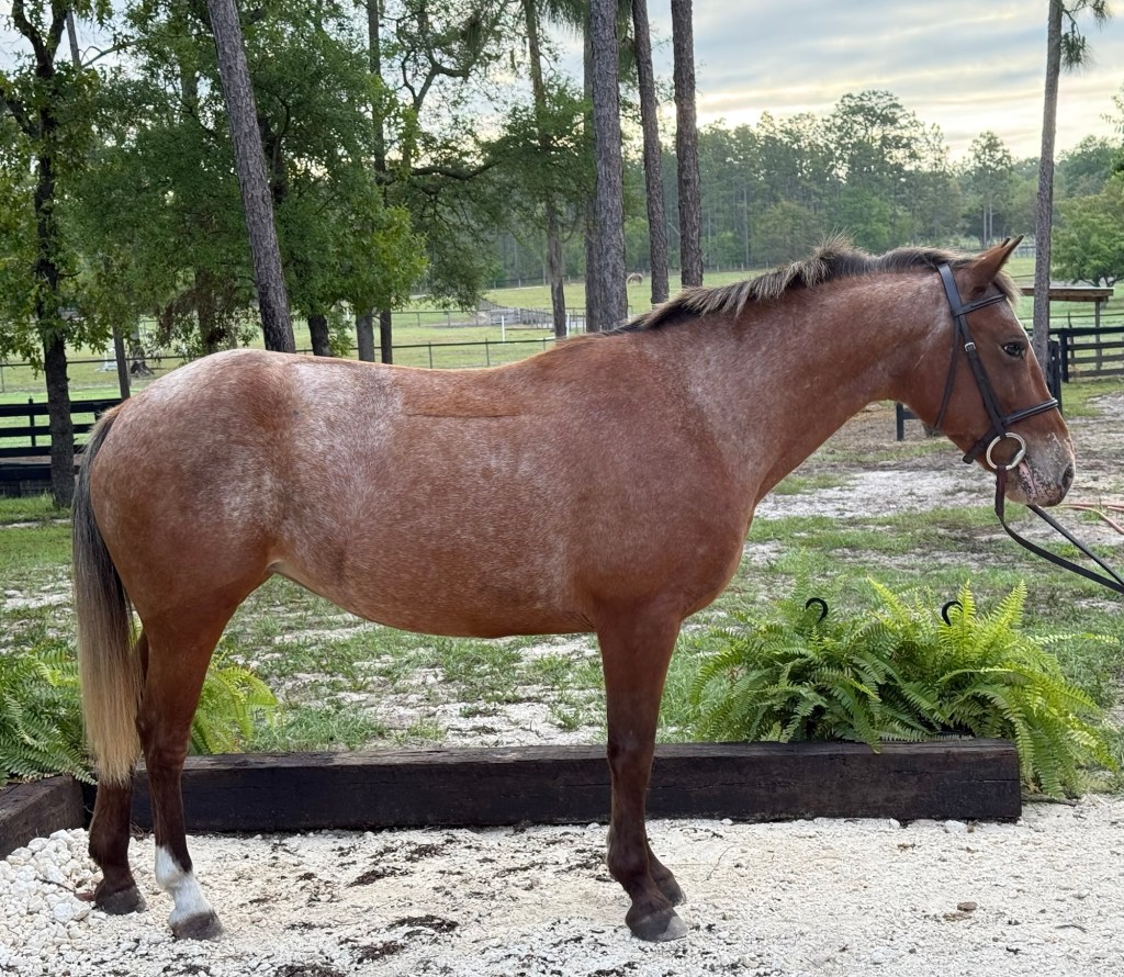 Blossom has shown locally at 2’3 and is schooling 2’6 courses. Carries a nice balance and rhythm, could easily make into a good division or short stirrup pony. Honest and straightforward over fences. Blossom has extensive trail experience and is the same pony at home and off property. She has been ridden by kids and is currently in a program with YRs. Kind and easy on the ground, great to be handled by the littles. Located in Morriston, Fl- 20 mins from HITS. $12k.